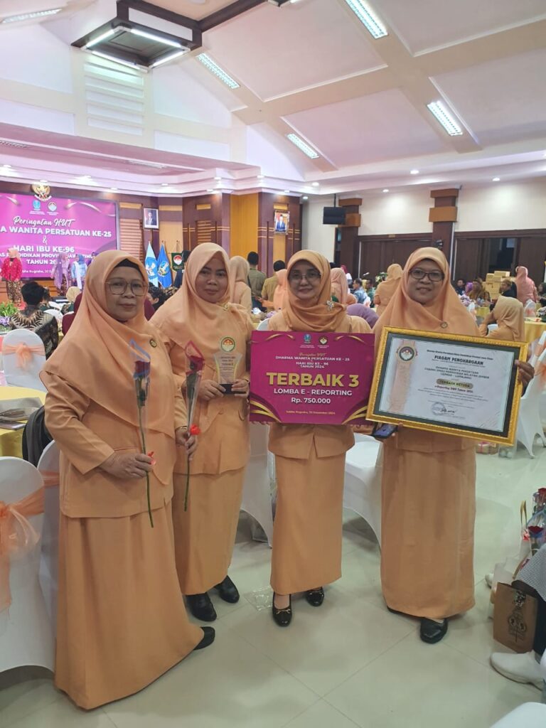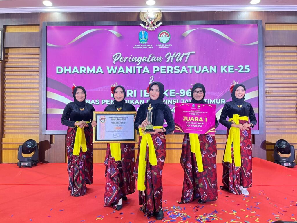 Surabaya, 30 Desember 2024 – Dharma Wanita Persatuan (DWP) Cabang Dinas Wilayah Jember berhasil mengukir prestasi gemilang dalam rangka peringatan ulang tahun Dharma Wanita Persatuan ke-25 dan Hari Ibu ke-96 yang diadakan oleh DWP Dinas Pendidikan Jawa Timur. Dalam ajang yang penuh semangat tersebut, DWP Cabang Dinas Pendidikan Wilayah Jember meraih Juara 1 dalam lomba Cipta Jingle dan Juara 3 dalam lomba e-reporting.